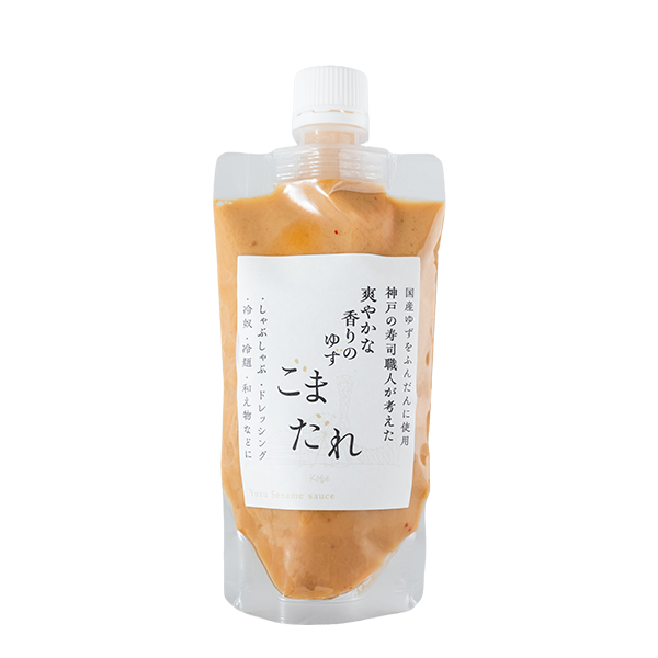 原材料名:ごま(国内製造)、果汁(ゆず)、醤油(大豆・小麦を含む)、味噌(大豆を含む)、みりん、醸造酢、清酒、キビ糖、オリーブオイル、トマトピューレ、粉鰹、すりごま、にんにく、一味